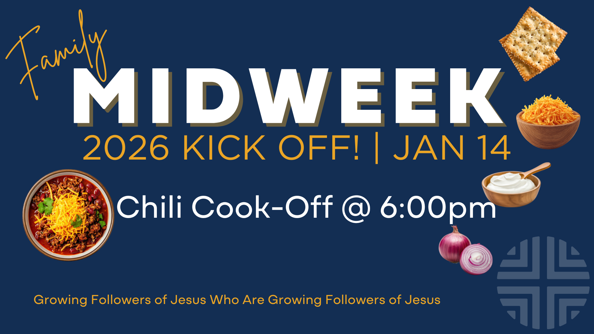 We’re kicking off the next Family Midweek semester with a Chili Cook-Off from 6:00–7:00pm! Enjoy food, fellowship, and friendly